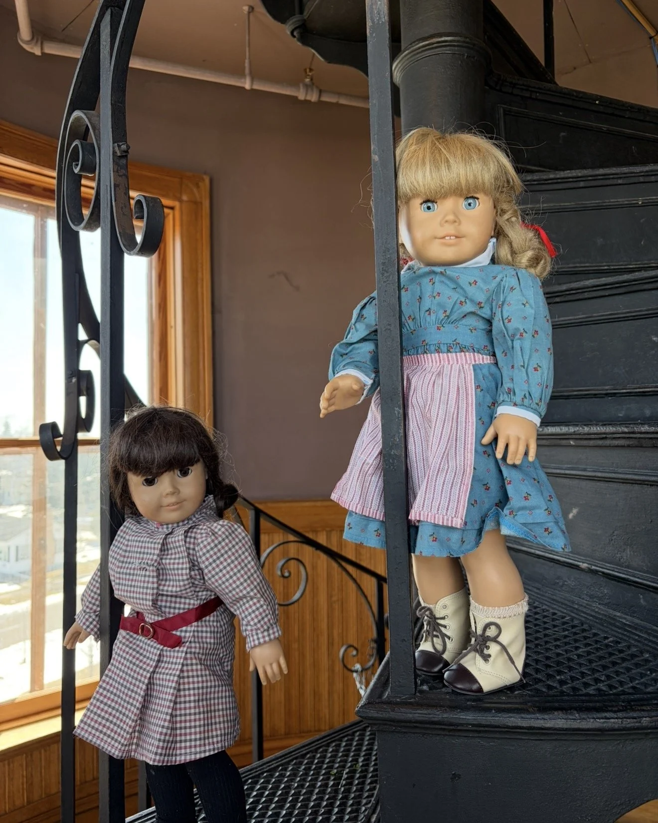 Did you or your kids grow up playing with American Girl Dolls? What started as a small toy company in Wisconsin has exploded into an international sensation. American Girl turns 40 years old this year, and what better way to celebrate than with a photoshoot! Two of the original American Girl Dolls created were Samantha Parkington and Kirsten Larson. Though both dolls have different stories, their histories begin to merge at Fairlawn Mansion. Samantha, born in 1895 in Upstate New York, would have been very close in age to Lois and Myrna Pattison. Samantha was raised by her wealthy ‘Grandmary’ and attended finishing school, learned needlepoint, and was taught proper etiquette as part of her schooling, just like the Pattison children. Kirsten was a Swedish immigrant who moved to Minnesota in 1854, the same year the City of Superior was officially incorporated. Additionally, the Pattison Family hired a Swedish immigrant family named the Bolinders to work in their home. Samantha and Kirsten spent some time with us at Fairlawn and posed for a few photos along the way. To learn more, check out our Facebook and Instagram pages! Special thanks to Sigrid and Cora M. who came in to Fairlawn and shared their American Girl Dolls with us for the photo shoot!